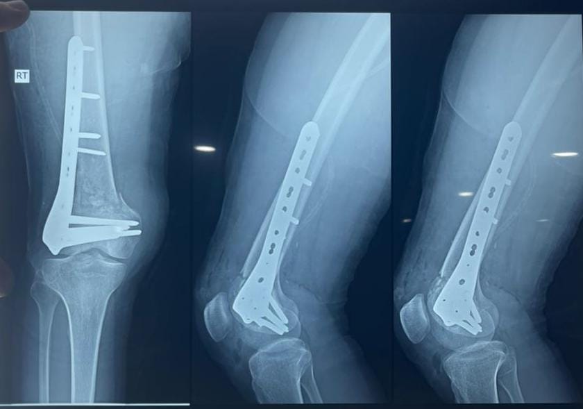 POST TRAUMATIC CASE OF RT DISTAL FEMUR FRACTURE AND FIXATION DONE THROUGH LCP VIA ANTERO LATERAL APPROACH BY AN ORTHOPEDIC SURGEON. NOW ITS TIME FOR PHYSIOTHERAPY .(FEMUR FRACTURE MANAGEMENT)